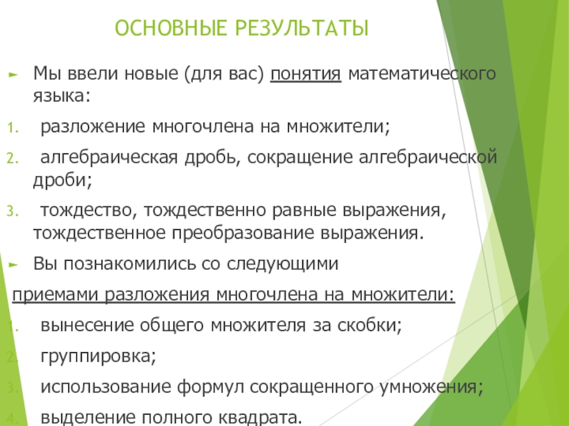 Слайд 21ОСНОВНЫЕ РЕЗУЛЬТАТЫ