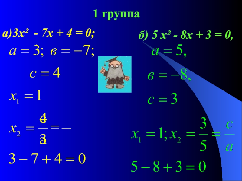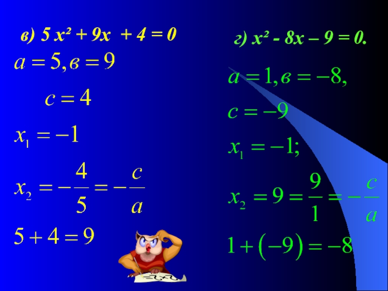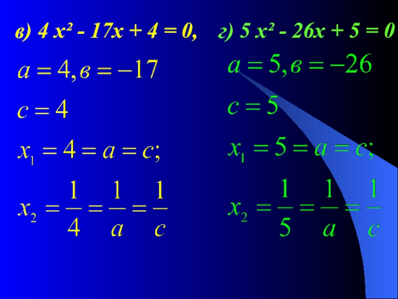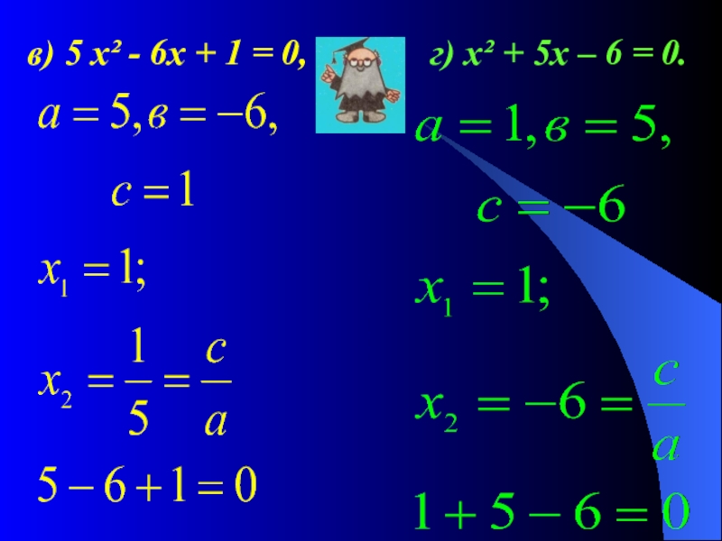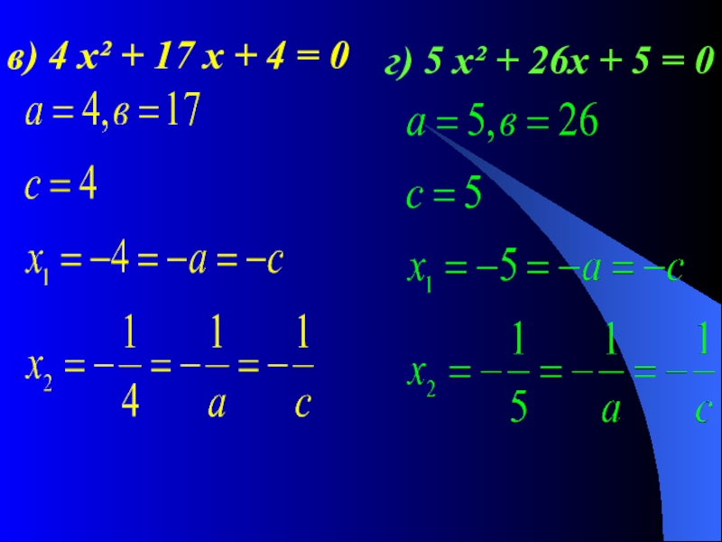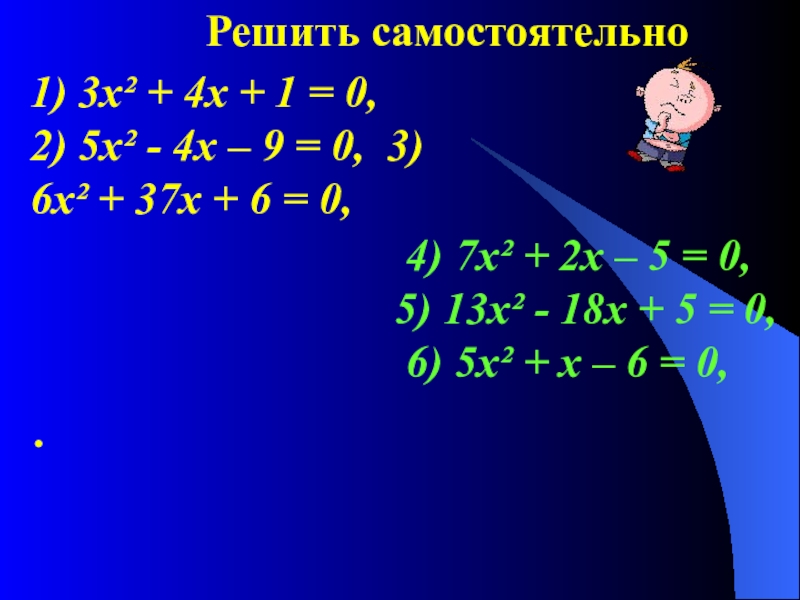 4) 7х² + 2х – 5 = 0, 5) 13х² - 18х + 5 = 0,