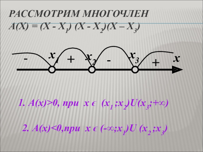 2. А(х)<0,при x ϵ (-∞;x1)U (x2 ;x3)