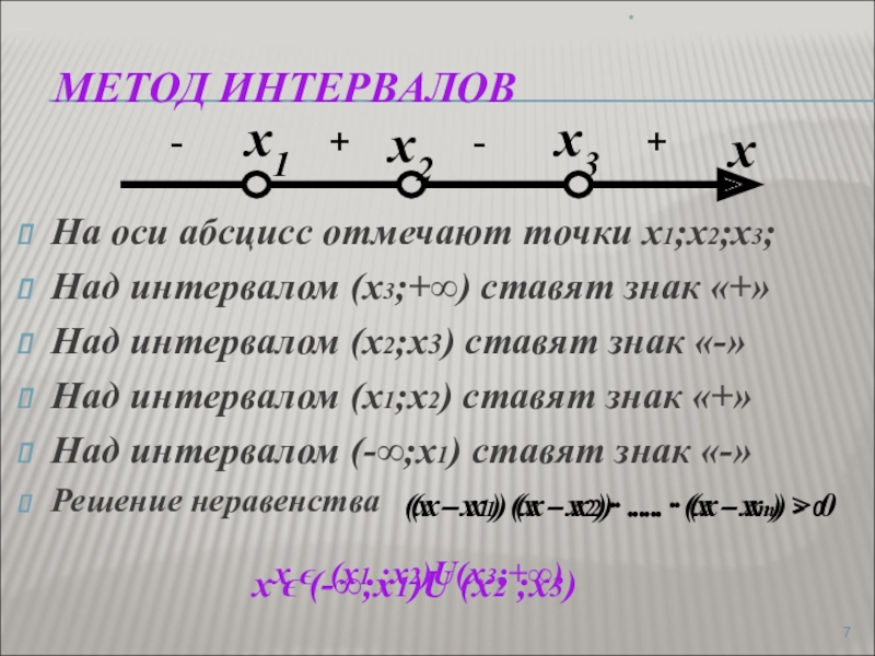 (х - х1) (х - х2)· … · (х - хn) > 0