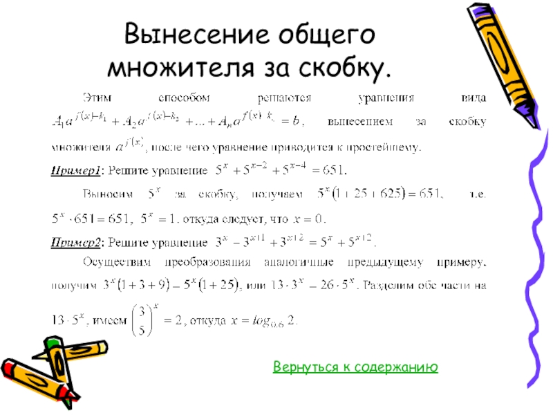 Вынесение общего множителя за скобку.Вернуться к содержанию