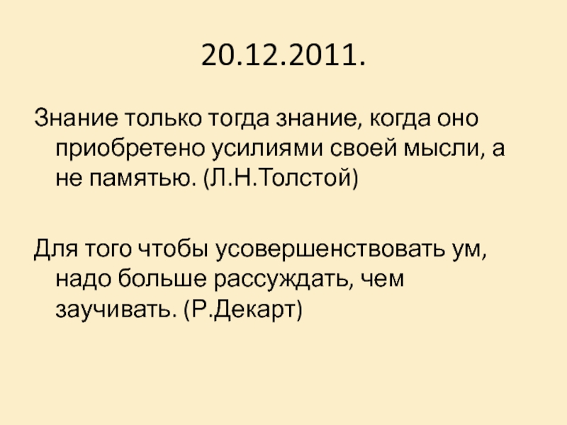 Для того чтобы усовершенствовать ум, надо больше рассуждать, чем заучивать. (Р.Декарт)