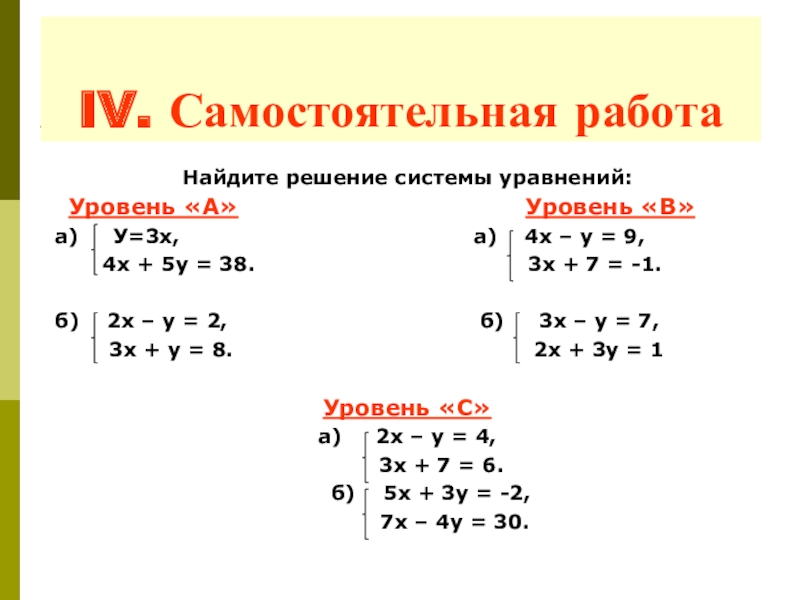 а) 6x – 5y = 4, б) 3х – у = 5, в) х – у = 3,