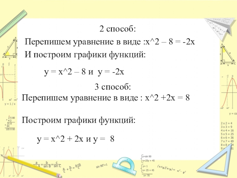 y = x^2 – 8 и y = -2x