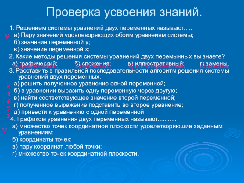 а) графический; б) сложения; в) иллюстративный; г) замены.