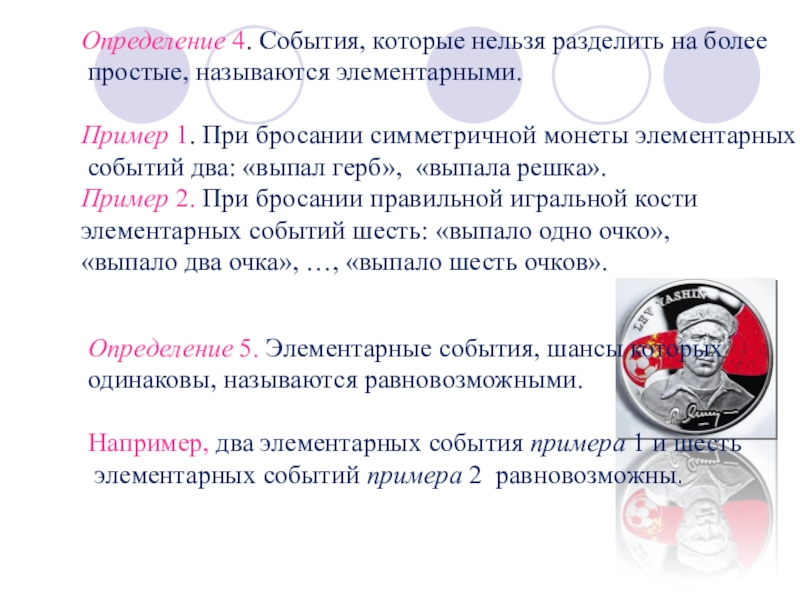 Слайд 7Определение 4. События, которые нельзя разделить на более