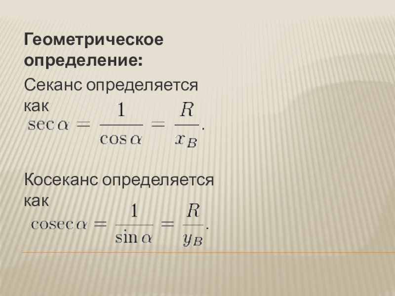 Геометрическое определение:Секанс определяется как Косеканс определяется как