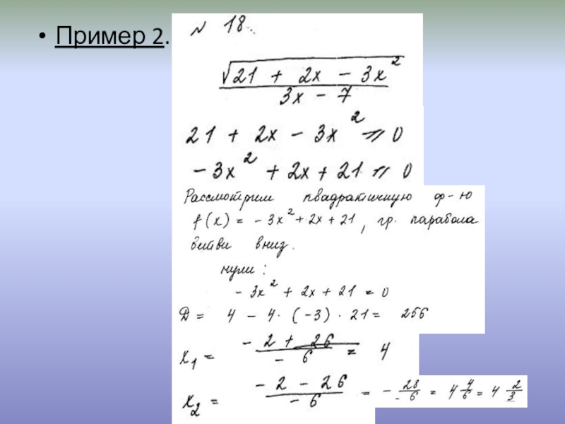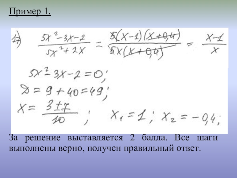 Комментарий. Все этапы решения присутствуют, корни в правом столбце найдены