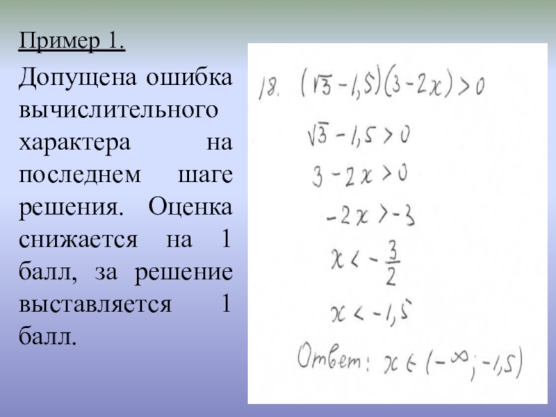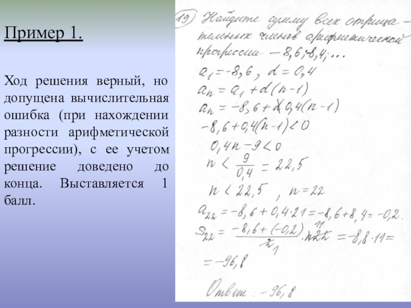 тот факт, что 1 балл допускается ставить в тех случаях, когда единственная вычислительная ошибка (описка) стала причиной того, что неверен ответ.