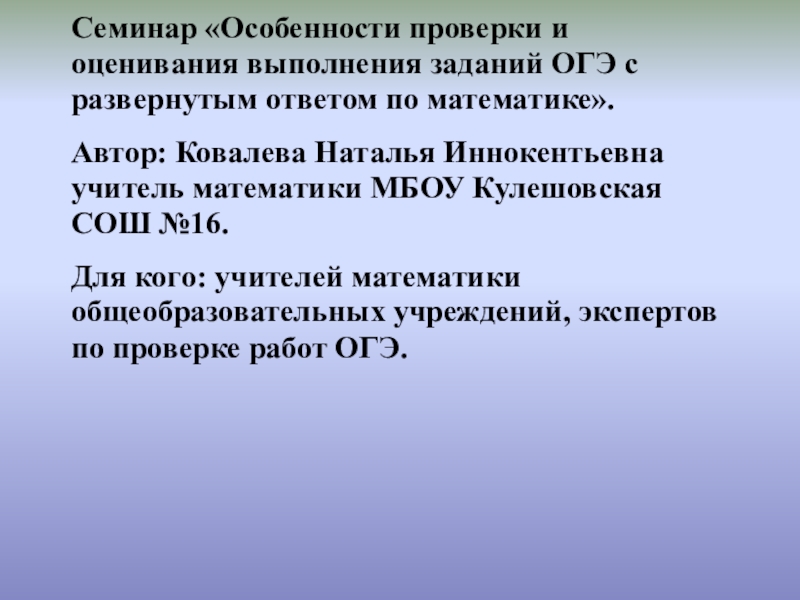 Слайд 2Семинар «Особенности проверки и оценивания выполнения заданий ОГЭ с развернутым ответом