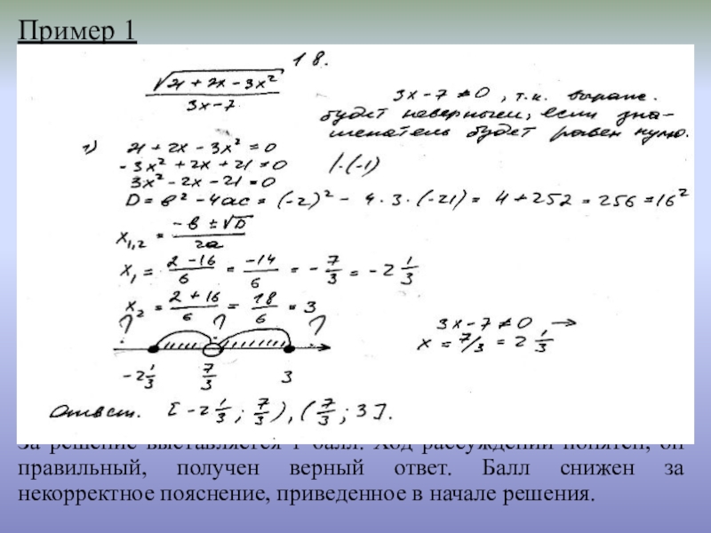 допущена ошибка (хотя нахождение области определения дроби в данном случае не требуется), за решение выставляется 1 балл.