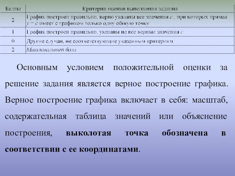 Слайд 52Основным условием положительной оценки за решение задания является верное построение графика.