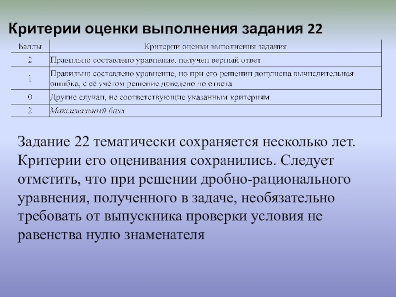 Задание 22 тематически сохраняется несколько лет. Критерии
