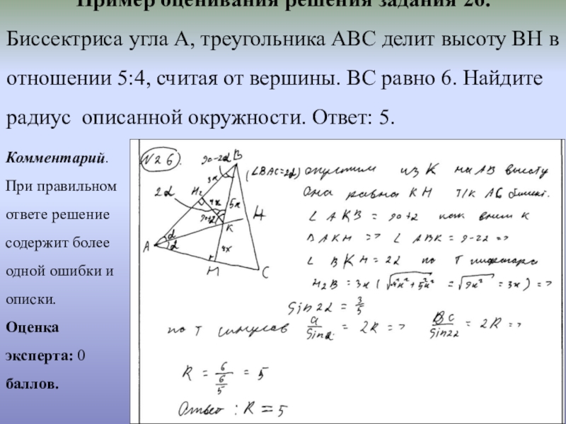 тому, которое описано в рекомендациях. При наличии в работах учащихся других решений критерии вырабатываются предметной комиссией с учетом описанных общих подходов. Решения учащихся могут содержать недочеты, не отраженные в критериях, но которые, тем не менее, позволяют оценить результат выполнения задания положительно (со снятием одного балла). В подобных случаях решение о том, как квалифицировать такой недочет, принимает предметная комиссия.