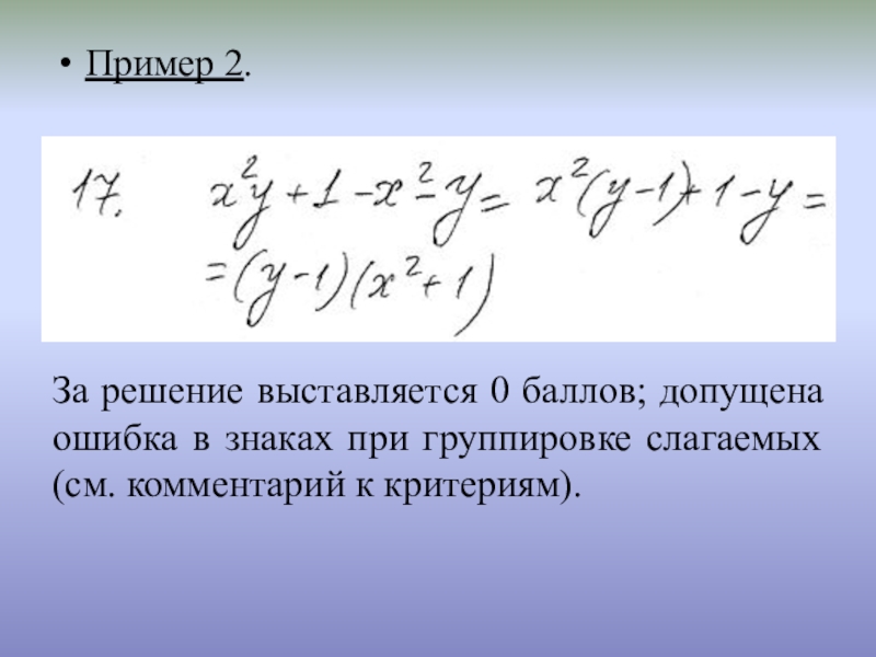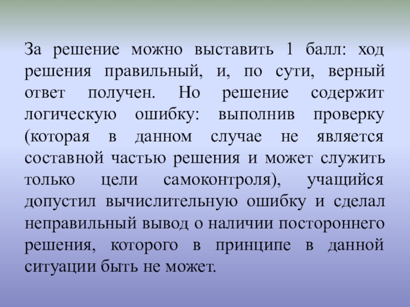 Слайд 31За решение выставляется 0 баллов; в нем содержится более одной ошибки,