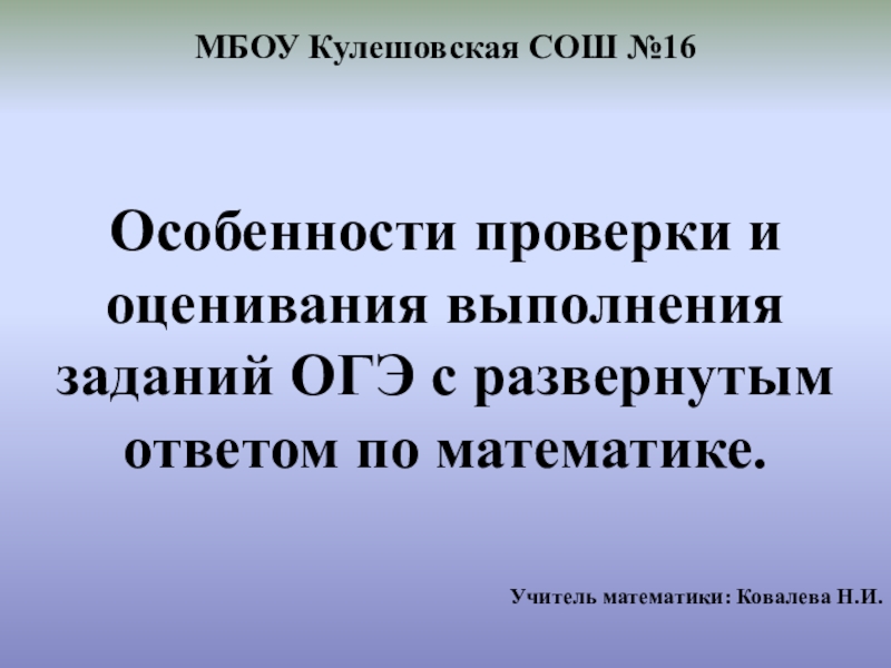 Слайд 1Особенности проверки и оценивания выполнения заданий ОГЭ с развернутым ответом по