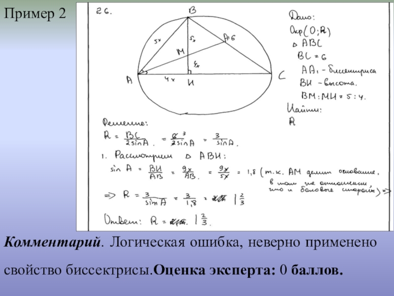 Комментарий. Логическая ошибка, неверно применено свойство биссектрисы.Оценка эксперта: 0 баллов.