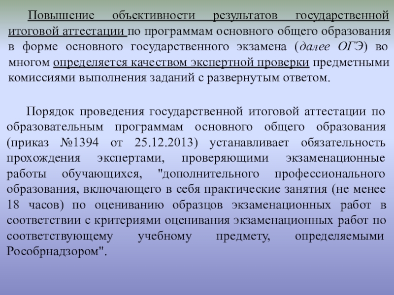 Слайд 3Повышение объективности результатов государственной итоговой аттестации по программам основного общего образования