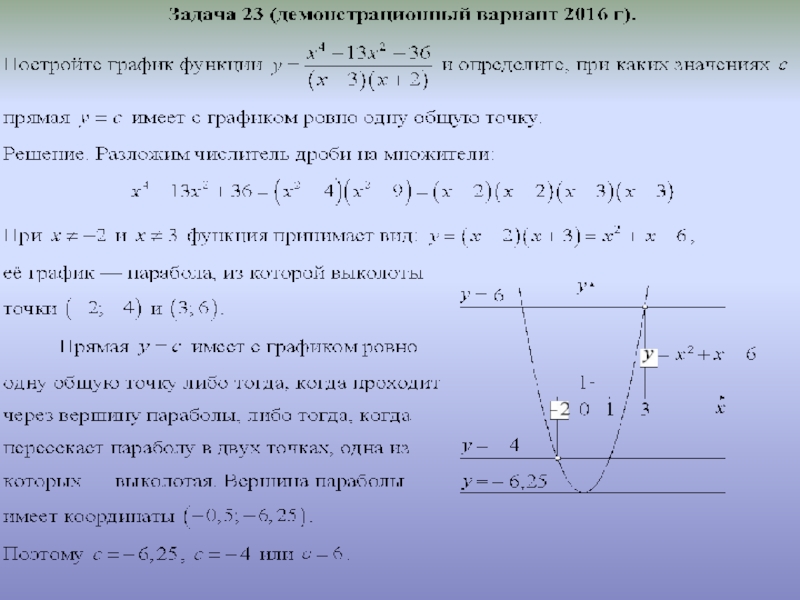 году, задание №21 – упрощение алгебраических выражений, решение уравнений, решение систем уравнений, решение неравенств, №22 – решение текстовой задачи, №23 – построение графика функции, №24 – задача на вычисление по геометрии, №25 – задача по геометрии на доказательство, №26 – геометрическая задача по геометрии высокого уровня сложности.