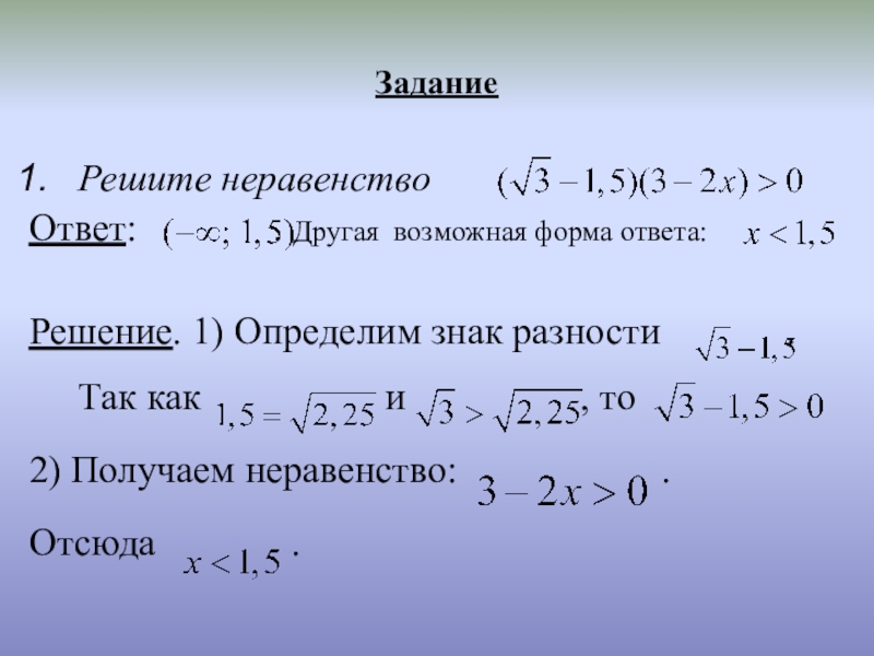 Замечание. Учащийся может воспользоваться формулой дискриминанта .