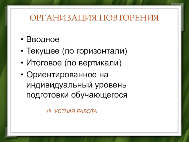 Организация вводного, текущего и итогового повторения