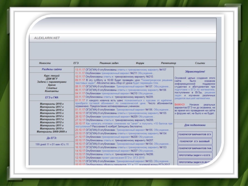 Это сайт презентаций, где можно хранить и обмениваться своими презентациями, докладами, проектами, шаблонами в формате PowerPoint с другими пользователями. Мы помогаем школьникам, студентам, учителям, преподавателям хранить и обмениваться учебными материалами.