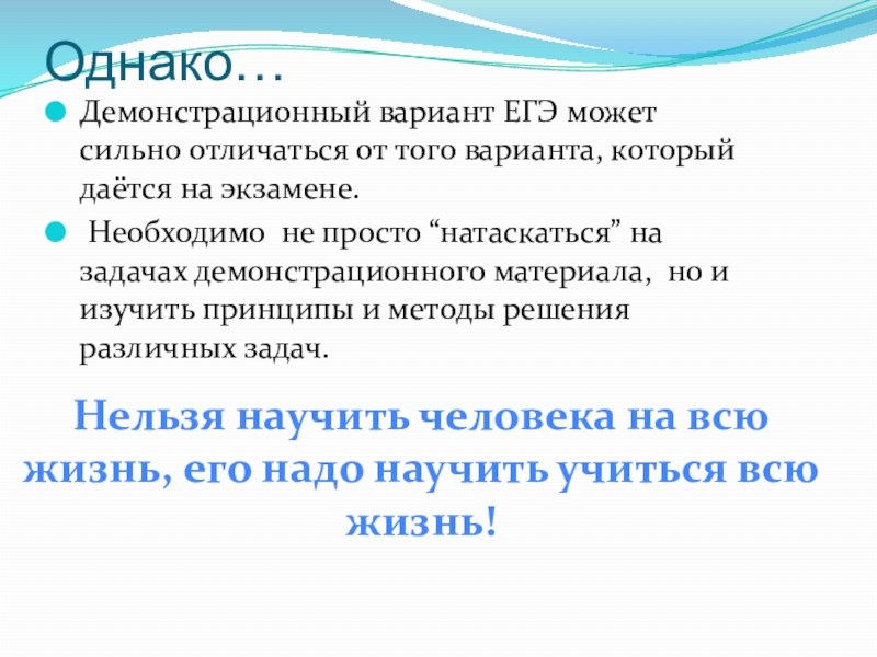 Нельзя научить человека на всю жизнь, его надо научить учиться всю жизнь!