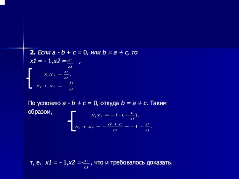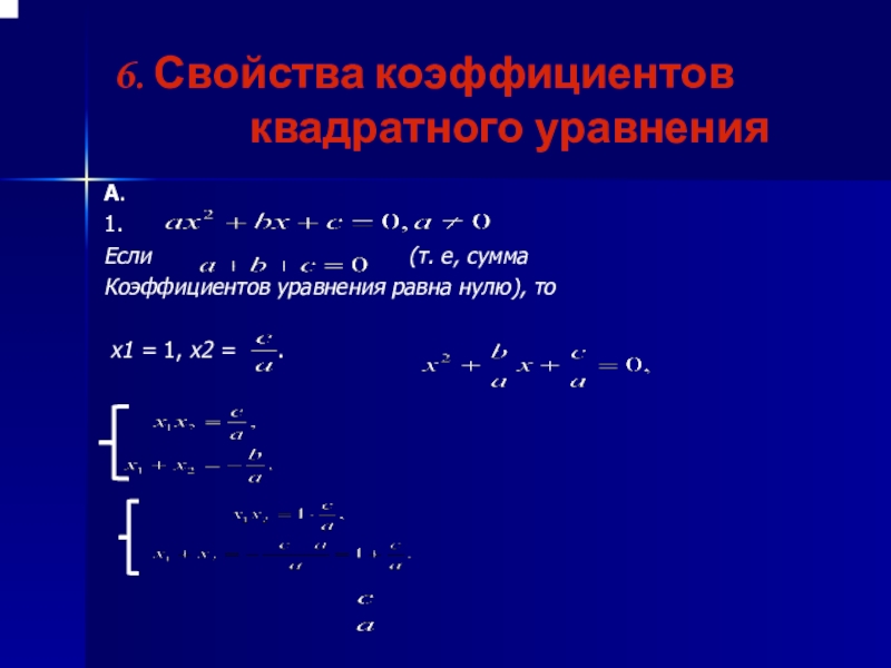6. Свойства коэффициентов        квадратного уравненияА. 1. Если