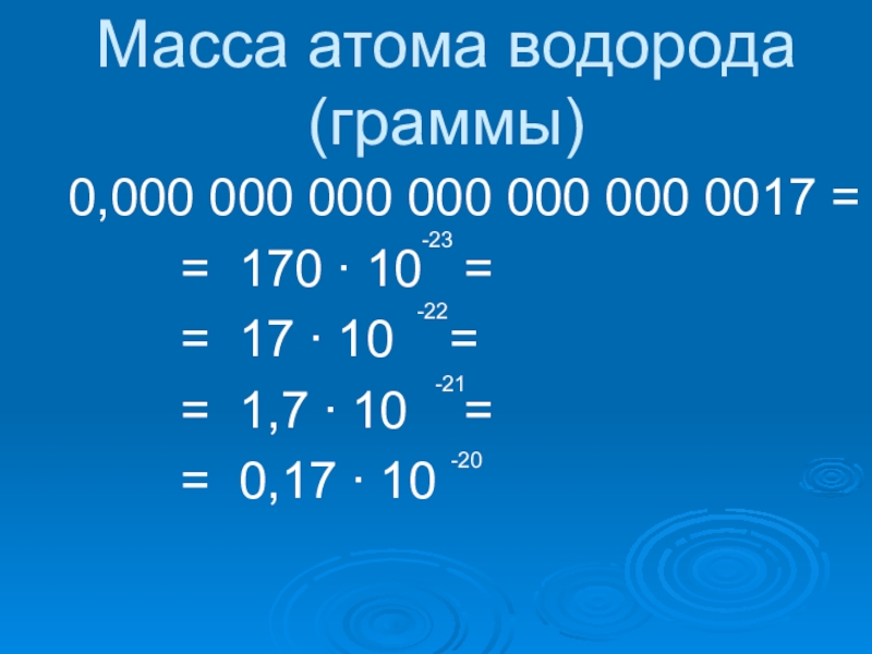 Масса атома водорода (граммы)