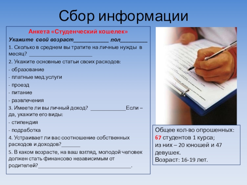 Общее кол-во опрошенных: 67 студентов 1 курса;