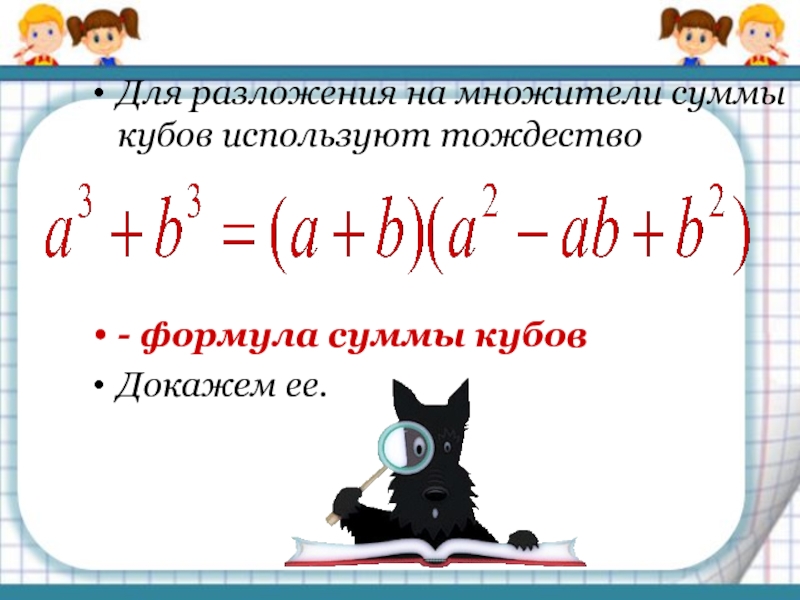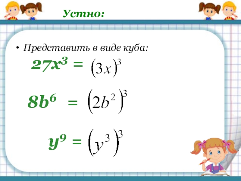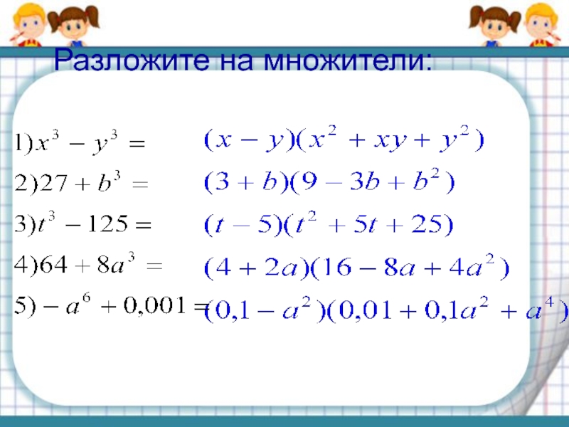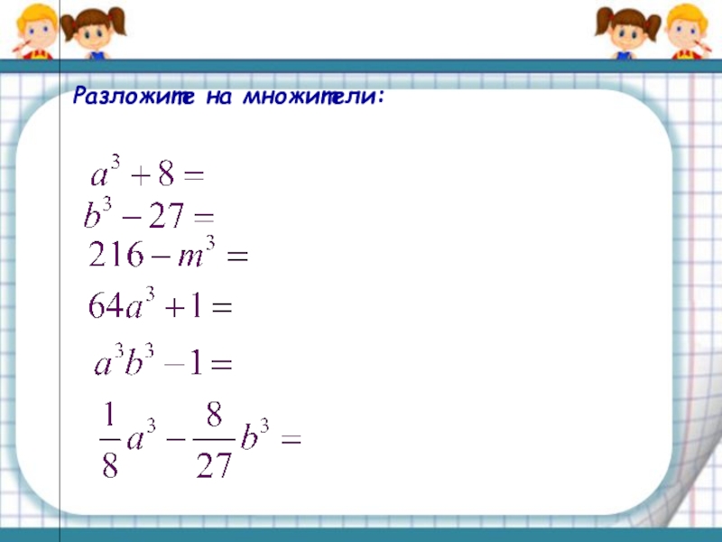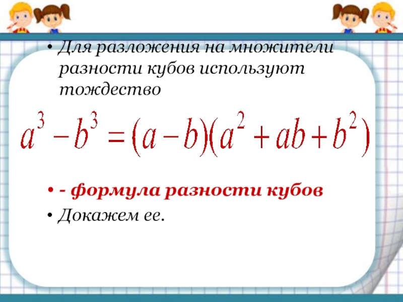 a³ - 8c³ = a³ - (2с)³ = (a – 2с)(a² + 2aс + (2с )²)