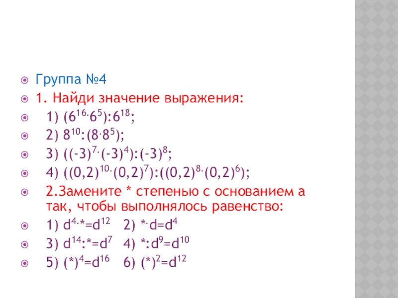 5) (х10)10 6) (-а4)2n