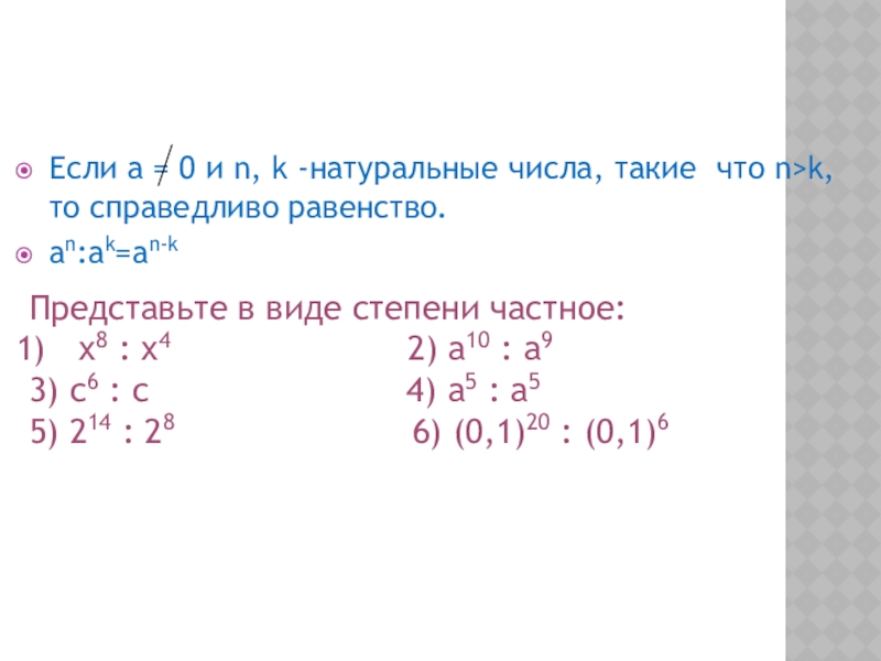 Представьте в виде степени частное: