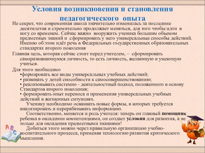 Владение эффективными стратегиями мышления, способность быть творцом, компетентным специалистом своего дела определяют необходимость применения технологии развития критического мышления для развития универсальных учебных действий по следующим причинам: навыки критического анализа являются неотъемлемыми характеристиками современного выпускника школы
