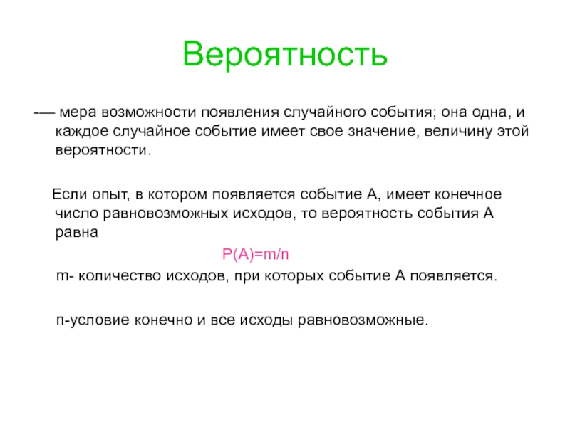 -— мера возможности появления случайного события; она одна, и каждое случайное