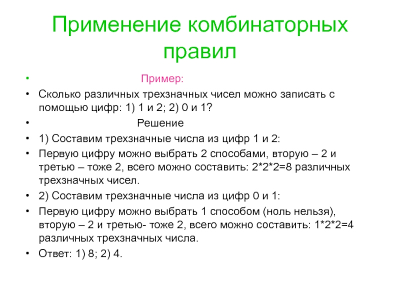 Слайд 15Применение комбинаторных правил
