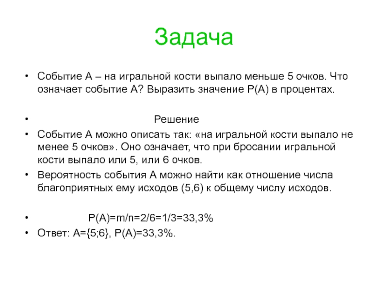 Событие А – на игральной кости выпало меньше 5 очков. Что