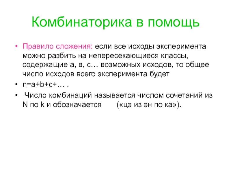 Правило сложения: если все исходы эксперимента можно разбить на