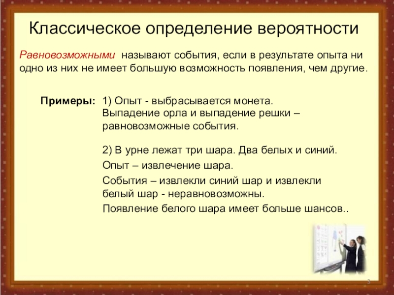 Пример: 1) Опыт – один раз выбрасывается монета.