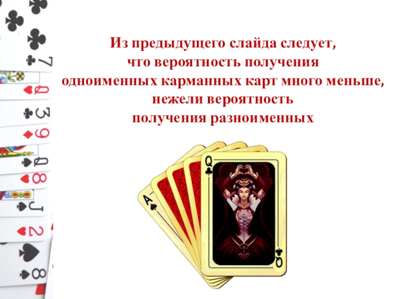 ( 52 в колоде, минус 8 карт – наши карманные и совпадающие с ними), третью – 40 способами (52 карты в колоде, минус 8, минус 4 – вторая выбранная карта и совпадающая с нею).