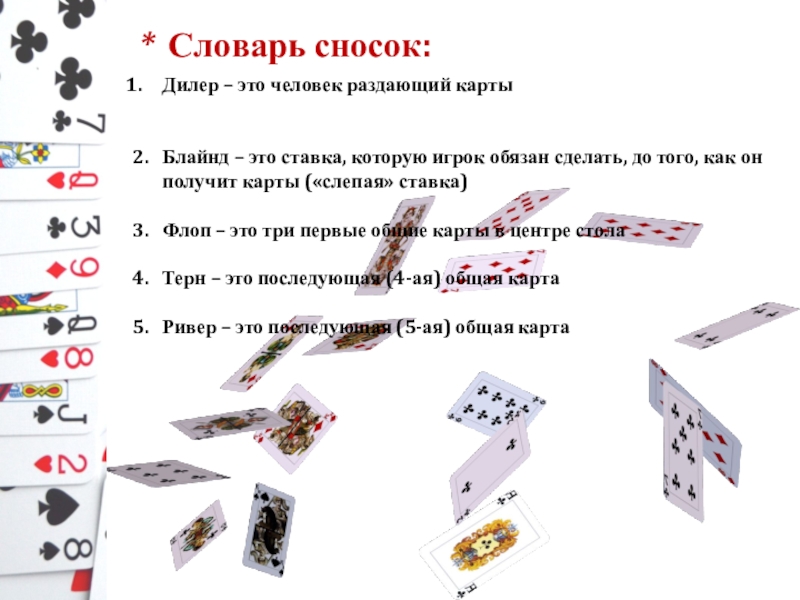 Определить комбинации карт, обеспечивающие победу, при игре в покер.
