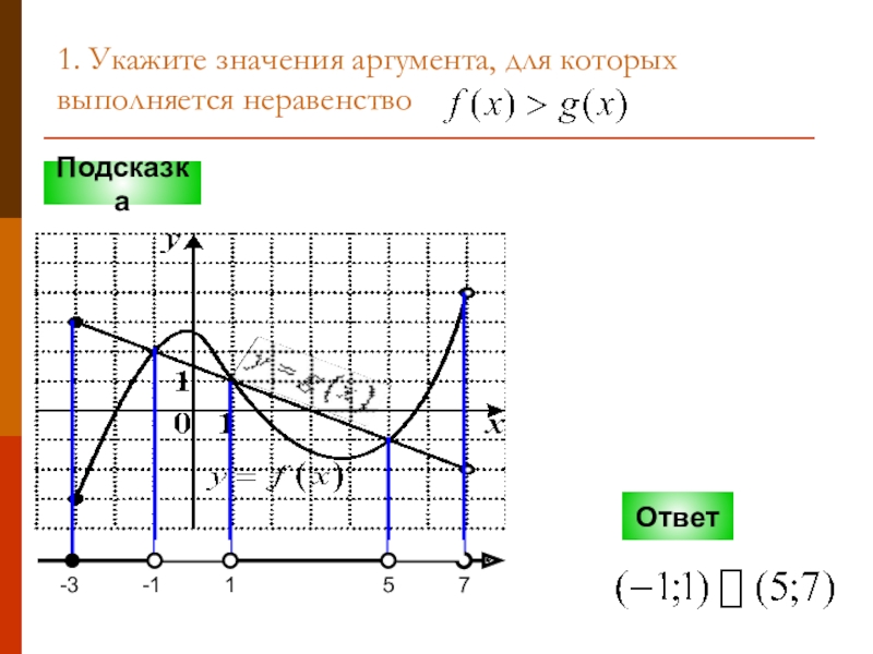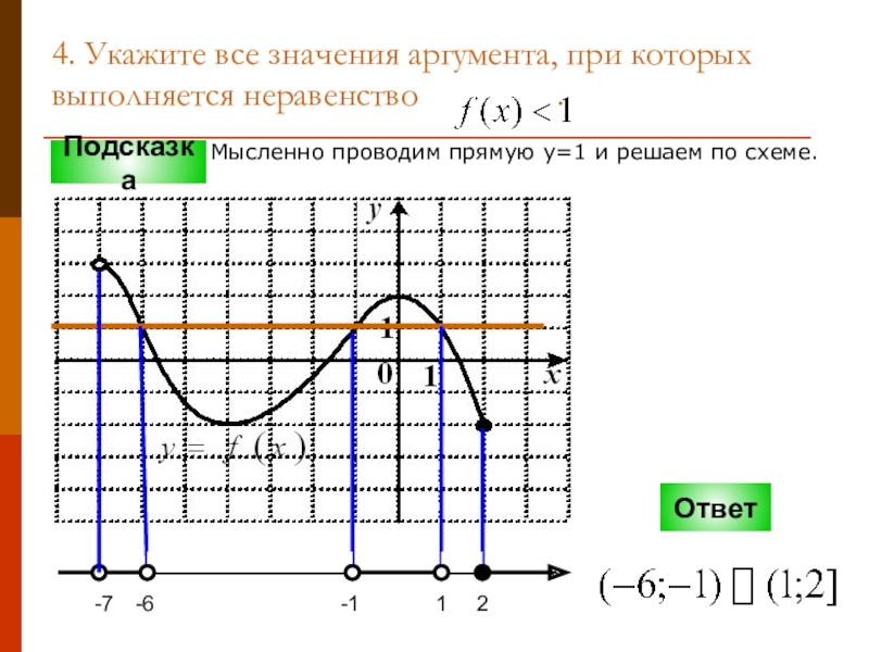 Мысленно проводим прямую у=1 и решаем по схеме.