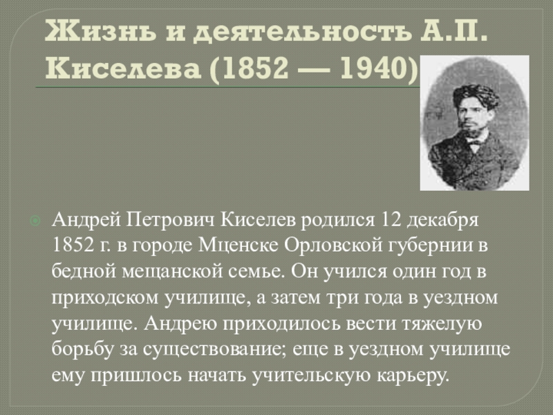 Жизнь и деятельность А.П. Киселева (1852 — 1940)
