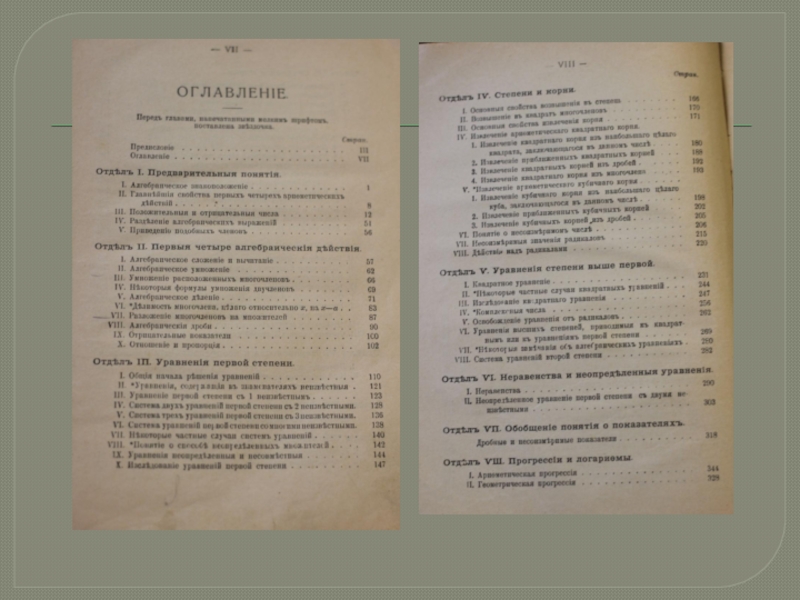 далеко шагнули вперед. Возрастание роли математики в жизни современного общества вызвало новые требования к постановке математического образования в средней школе. Поэтому содержание книг А.П. Киселева можно считать в какой-то мере устаревшим. Однако, благодаря высокому педагогическому мастерству, с которым они были написаны, простоте, доходчивости и логичности изложения, книги эти не потеряли значимости и в настоящее время. Появление предлагаемых книг явится скромной данью признательности и уважения выдающемуся учителю математики».