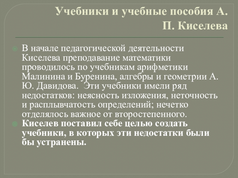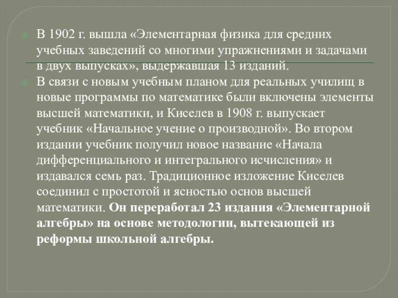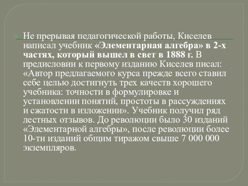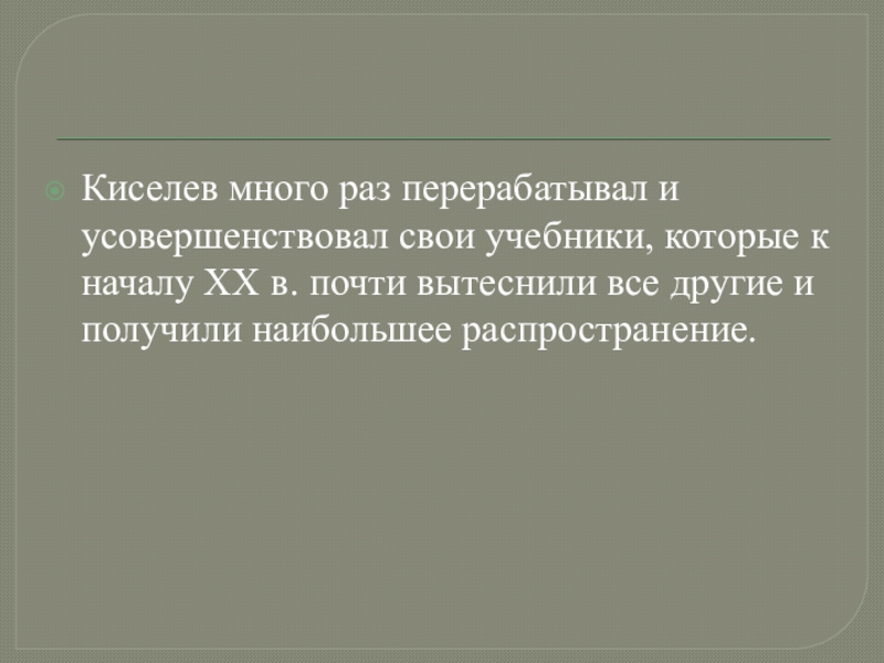 Слайд 13Киселев много раз перерабатывал и усовершенствовал свои учебники, которые к началу