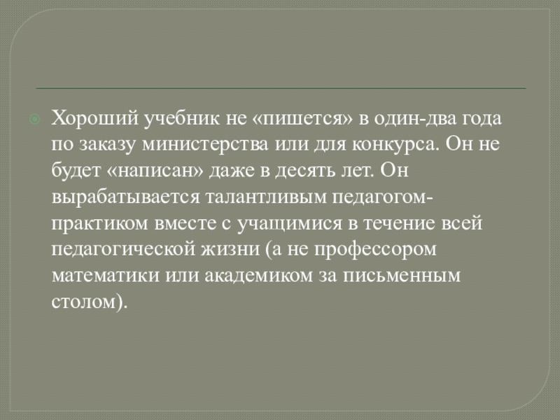 Слайд 20Хороший учебник не «пишется» в один-два года по заказу министерства или