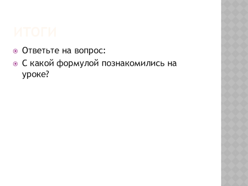 ИтогиОтветьте на вопрос: С какой формулой познакомились на уроке?