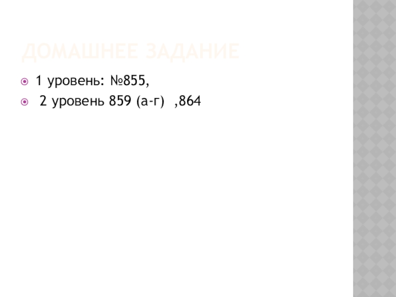 Домашнее задание1 уровень: №855, 2 уровень 859 (а-г) ,864