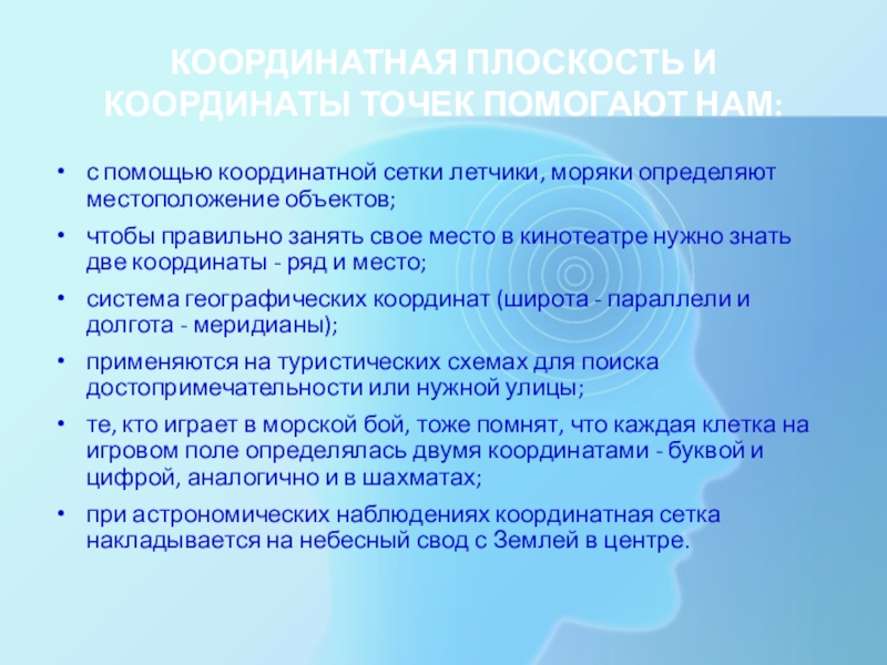 Слайд 6КООРДИНАТНАЯ ПЛОСКОСТЬ И КООРДИНАТЫ ТОЧЕК ПОМОГАЮТ НАМ: