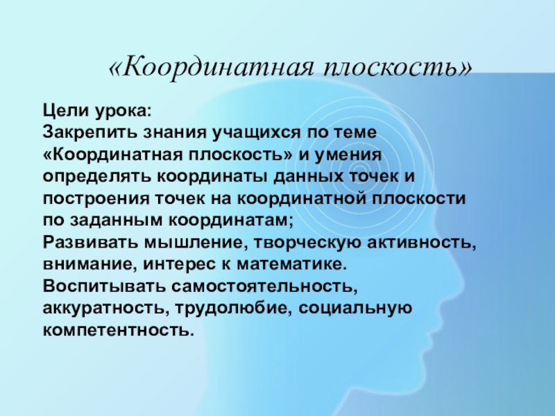 Закрепить знания учащихся по теме «Координатная плоскость» и умения
